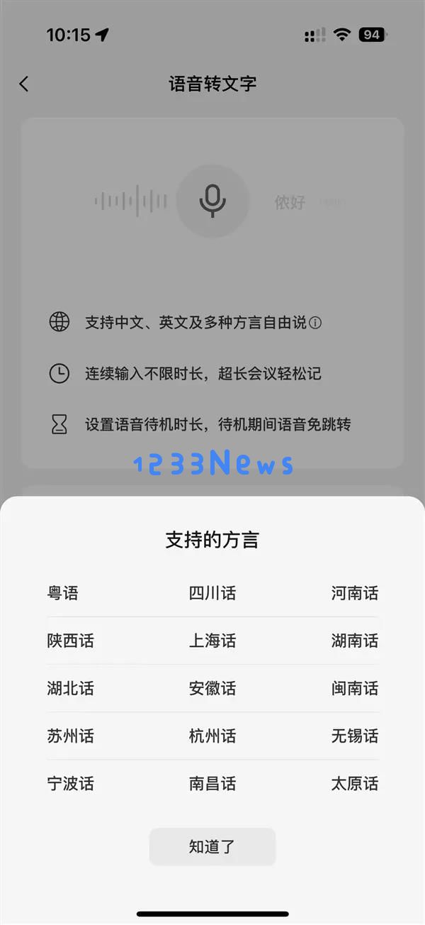 此次更新最引人注目的是对15种中国方言的深度支持,包括粤语、四川话、河南话、陕西话、上海话、苏州话、无锡话、南昌话等,覆盖南北方言区主流口音。用户无需手动切换语言模式,系统可自动识别并准确转写,真正实现“说方言,出文字”的自然输入体验。