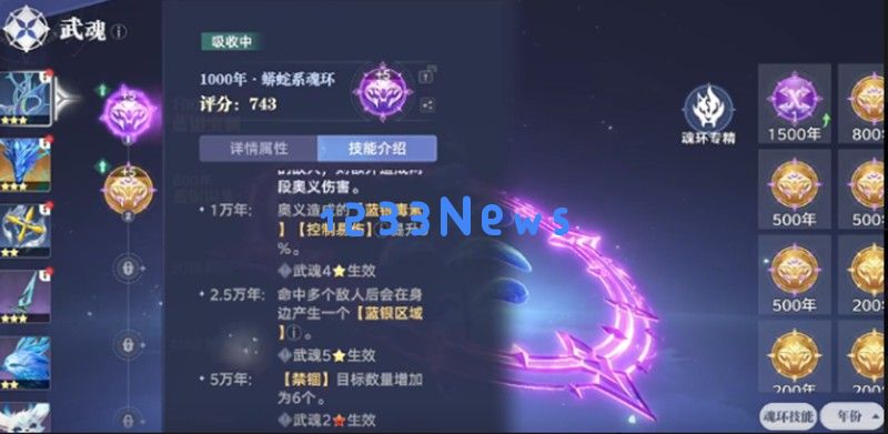 以蓝银草武魂为例,前期主要通过完成主线任务获取经验值,利用系统赠送的体力快速提升等级。当武魂等级达到24级时,需要开始注重魂环搭配,优先选择高年份魂环,比如1000年的蟒蛇系魂环,这类魂环能显著提升奥义伤害,同时契合控制型武魂的定位。