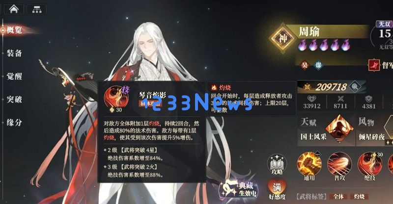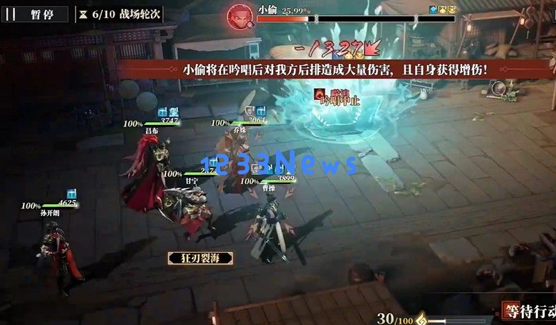 30%血量是小偷的斩杀线,这时他会开始咏唱大招,必须立即使用曹仁或吕布这类带打断技能的武将进行打断,否则队伍会直接团灭。此外,携带具有灼烧效果的武将可以持续给小偷挂上dot伤害,加快通关速度。