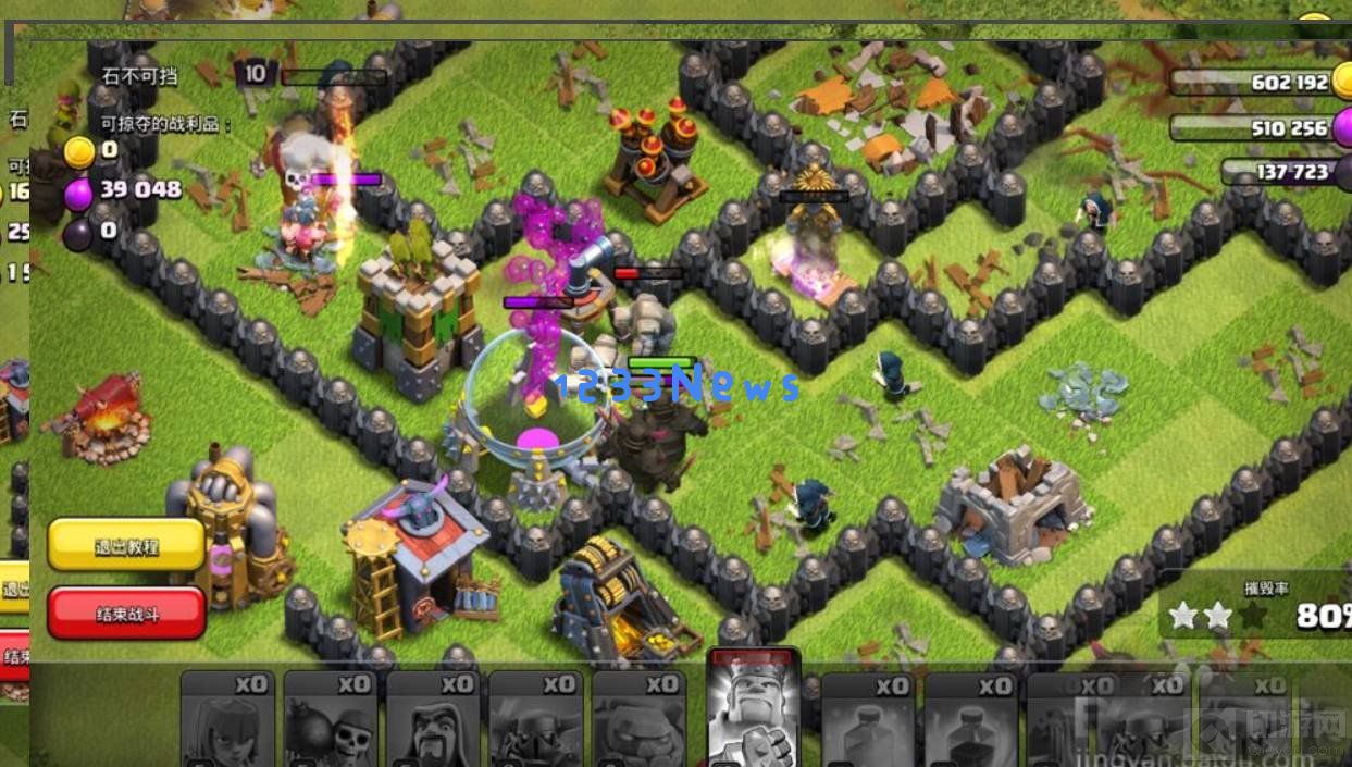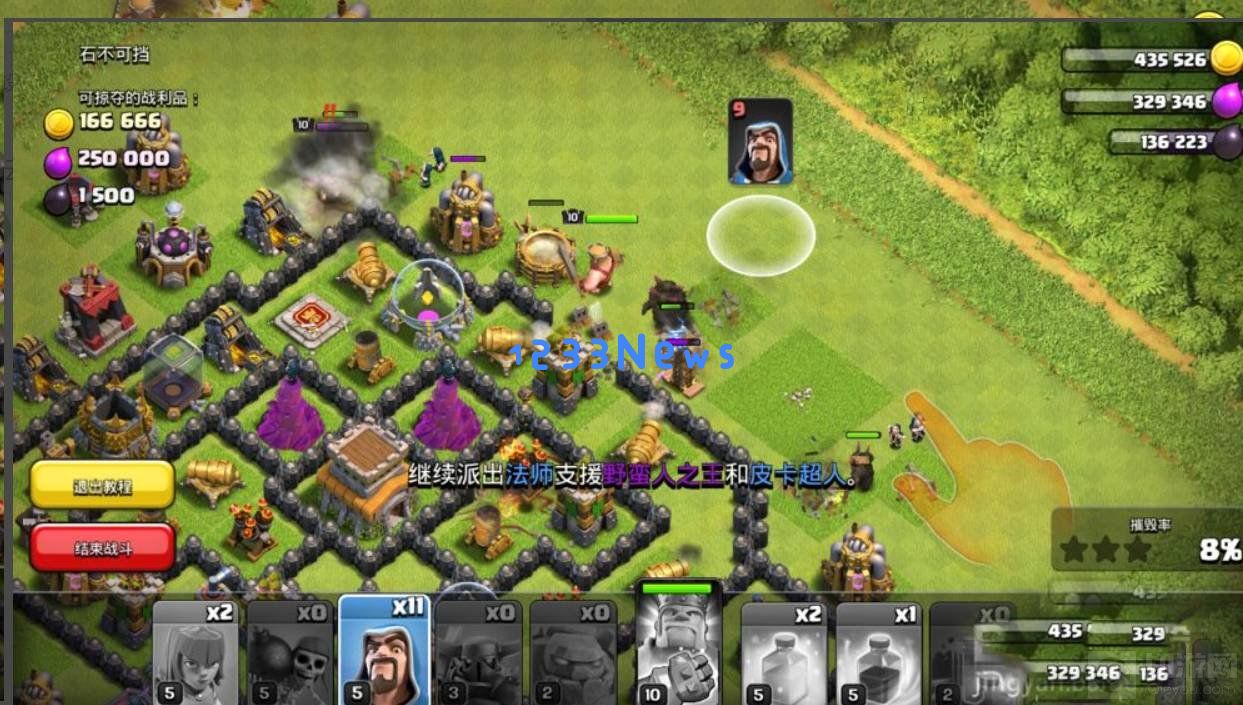 7、及时利用治疗法术,治疗法师队伍,快速摧毁敌人的防御建筑,即可取得三星。