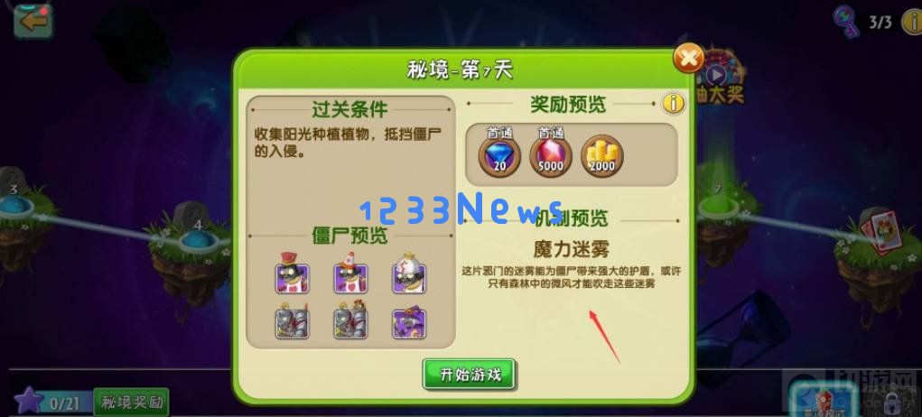 植物大战僵尸2游戏中的迷雾怎么过 迷雾通关教学