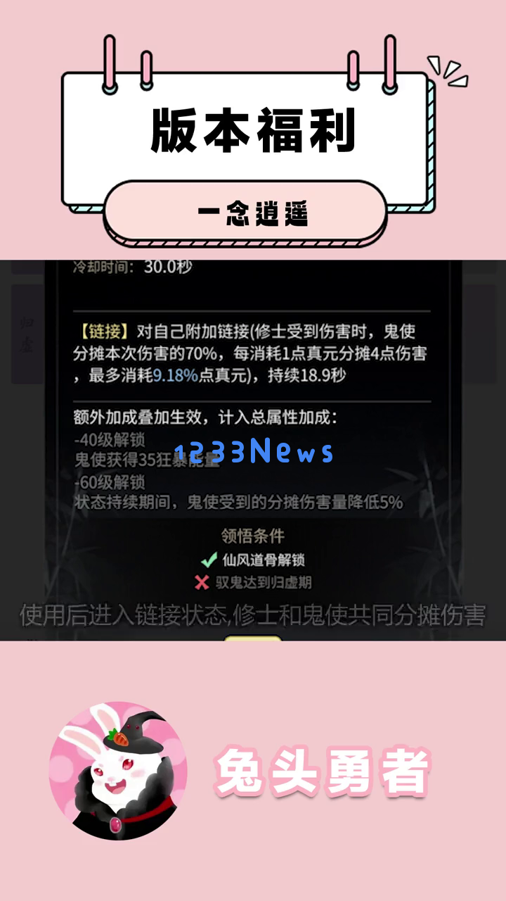 各位道友们大家好啊,这里是兔头!炎炎八月,《一念逍遥》迎来了一波大更新,不仅有超多福利免费送,还有全新的神通和活动等你来体验。快让我们一起来看看吧!