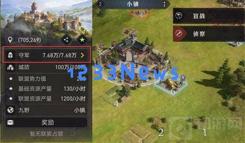 1、二级小镇有7.68w守军,100w城防,消灭守军后需要与队友一起攻击城墙,将城防值攻为0后才能攻占城市。前期打二级小镇集结队友,选择‘组队进攻’使用联盟军团的方式出征,在强大守军威压下联盟军团依靠众多人数优势不会瞬间被击溃,慢慢消耗即可将其击溃。