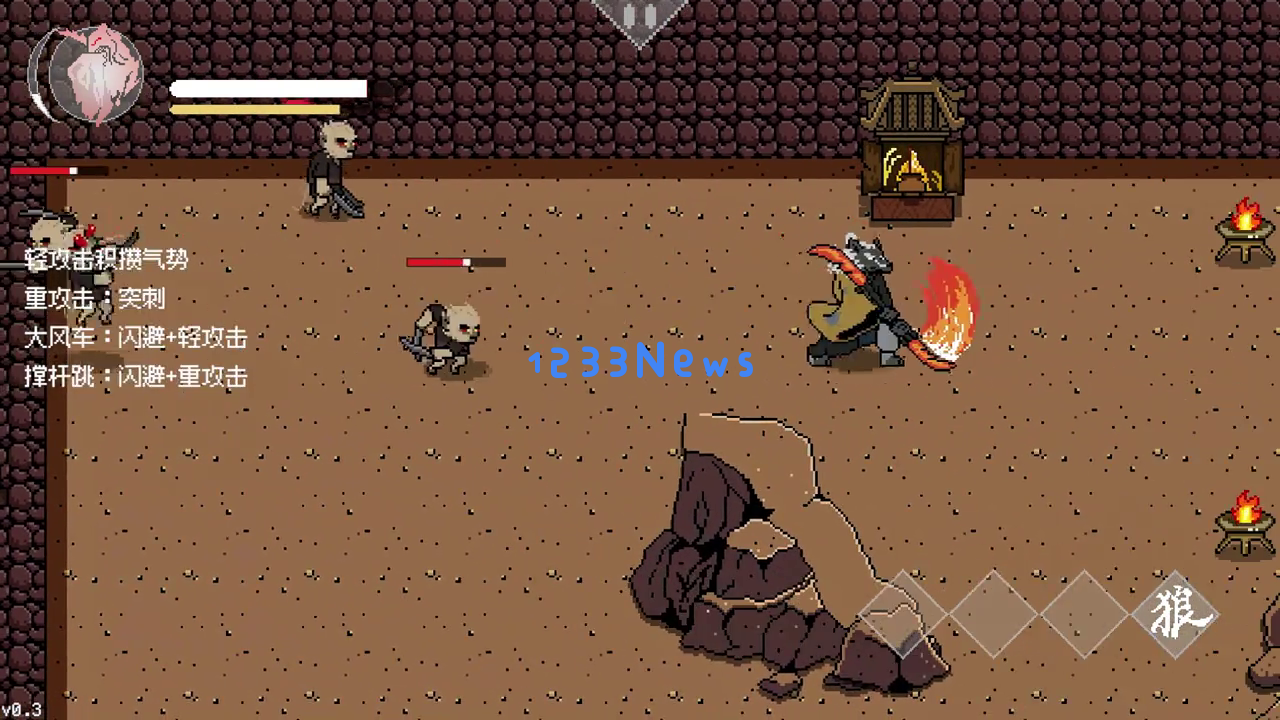 之前的0.2版在打完虎先锋这里就结束了,现在的0.3版到这里会发现需要“石之力”才能打开隐藏的门。我们这时可以传送到诊视频,然后打败师母就可以继续前进了。后面还增加了新BOSS黄风大圣,这里就不剧透了,大家自己慢慢探索吧!