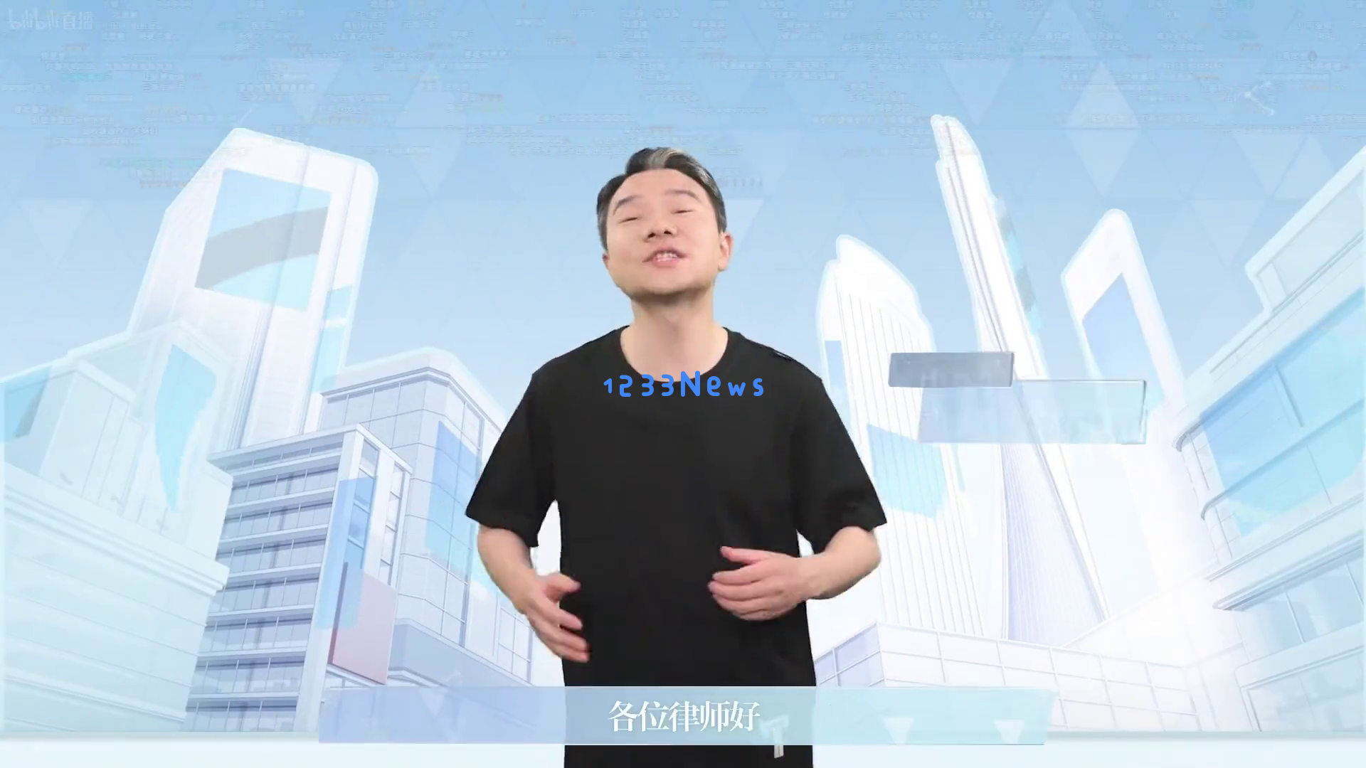 随后,我们迎来了老朋友大伟哥的登场。他站在城市背景前,双手交叉放在身前,微笑着说道:“各位律师好,我是你们的老朋友大伟哥。”这一幕让人感到亲切又温暖。