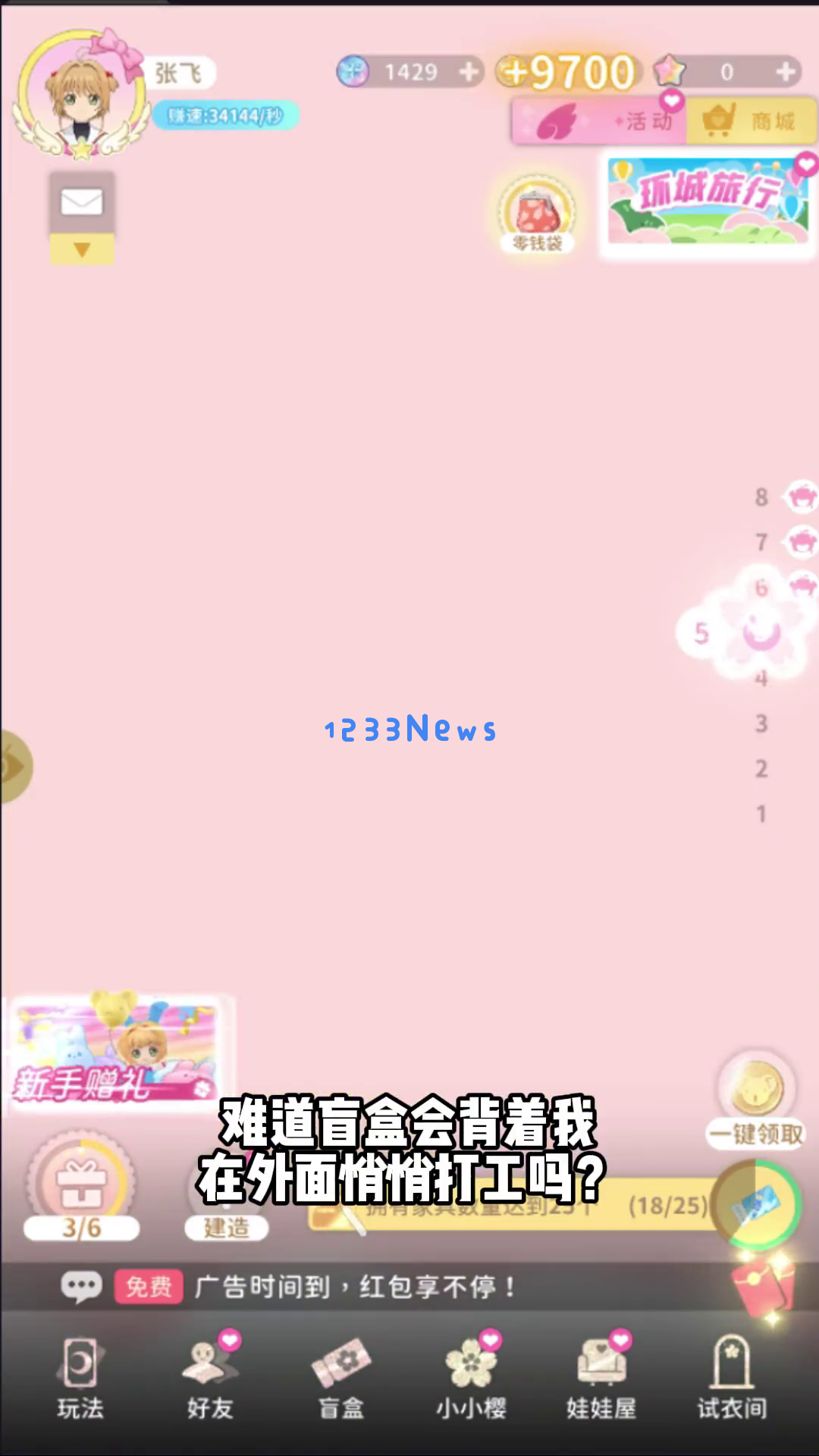 最后是“盲盒模拟器”,这是整个游戏最重要的部分之一。你可以通过抽卡获得小樱的手办盲盒,并将它们摆放在看板上。据说这些盲盒还会自动掉落金币,听起来是不是很神奇?