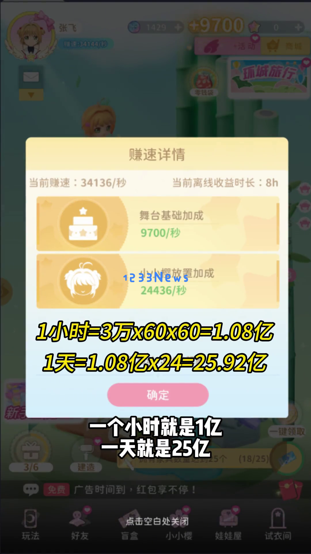 说到金币,游戏中的经济系统可是相当夸张的。你的盲盒打工一秒可以赚三万金币,一个小时就是一亿,一天就是二十五亿!简直是通货膨胀到了极致,感觉自己像是生活在津巴布韦一样。