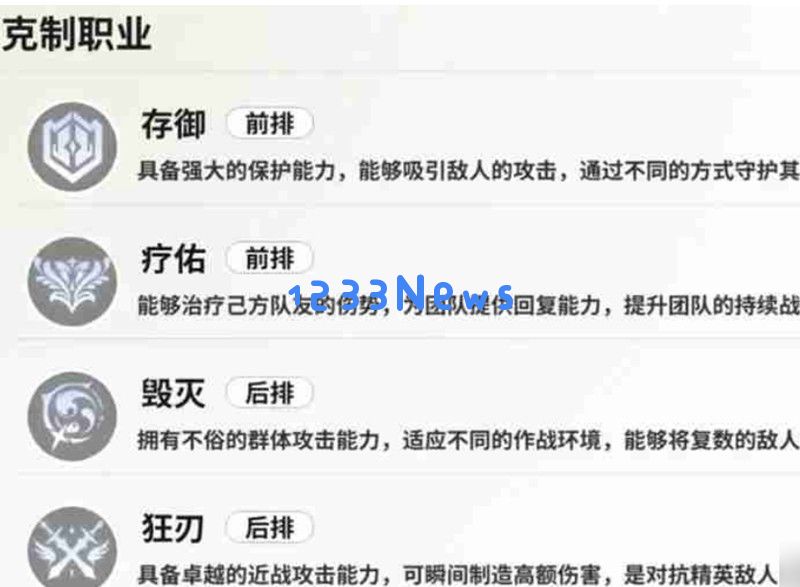 每个角色都有不同的属性分类