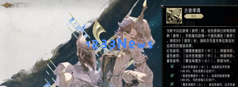 特性古音律调是阿卡贝拉的独特机制,初始携带三个音符。消耗红色音符可提升队友30%物理伤害,蓝色音符则能提升30%法术伤害,这些增益效果都能持续15秒。通过合理运用这些音符,阿卡贝拉能针对不同战斗需求为团队提供精准的辅助支援。