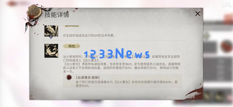 阿加雷斯的战技受刑者新生每12秒可主动释放一次,召唤火鸟对随机目标造成180%攻击力的法术伤害。技能升级后伤害提升至270%,提高了输出的稳定性。这个技能与他的特性烙印升温完美配合,能对有持续伤害效果的敌人额外造成20%伤害提升。