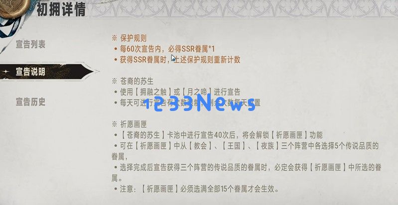 银与绯还为玩家准备了额外的福利。当常驻池抽卡次数达到150次和300次时,玩家可以获得夜眷棺椁道具,用于自选常驻SSR角色。不过需要注意的是,始祖阵营的SSR角色无法通过这个方式获取。当抽卡次数累计到450次时,玩家还能获得始祖棺椁,从中选择一名始祖势力的SSR角色。