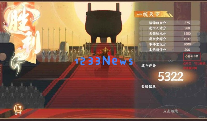 公式:375(演绎时间)+300(人才)+1425(城池)+750(粮)+750(钱)+200(军力)+200(结局评价)+1000(历史重现)=5000