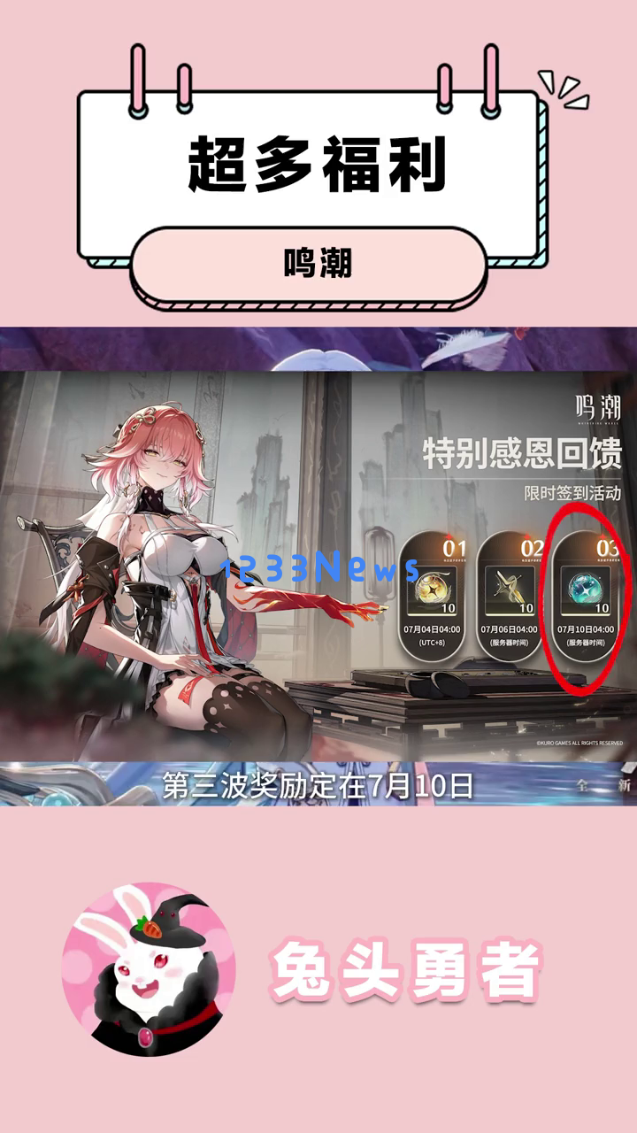 首先,让我们来看看这次的感恩回馈奖励。游戏官方为了感谢玩家们的支持,决定发放大量的福利。第一轮奖励就定在7月4日,直接发放十抽限定池,正好又是金熙池子,大家可以舒舒服服地抽起来了!