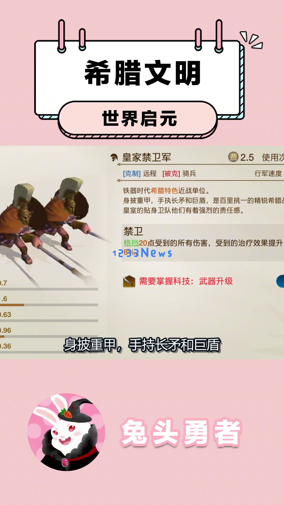 首先,我们来看看古希腊文明的特色兵种——皇家禁卫军。这帮身穿重甲、手持长矛和巨盾的勇士们可是防御力爆表的存在,能格挡二十点伤害,并且自身受到治疗效果提升百分之八。简直是前排坦克的最佳人选!
