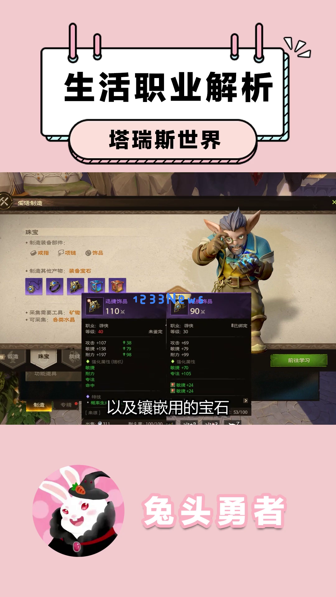 珠宝职业能够制造戒指、项链、饰品等部位的装备,以及镶嵌用的宝石。虽然珠宝市场也存在被操控的风险,但由于宝石的需求量一般比装备大得多,练到后期还是能赚不少金币的。前提是你得跟上大环境的练度哦!