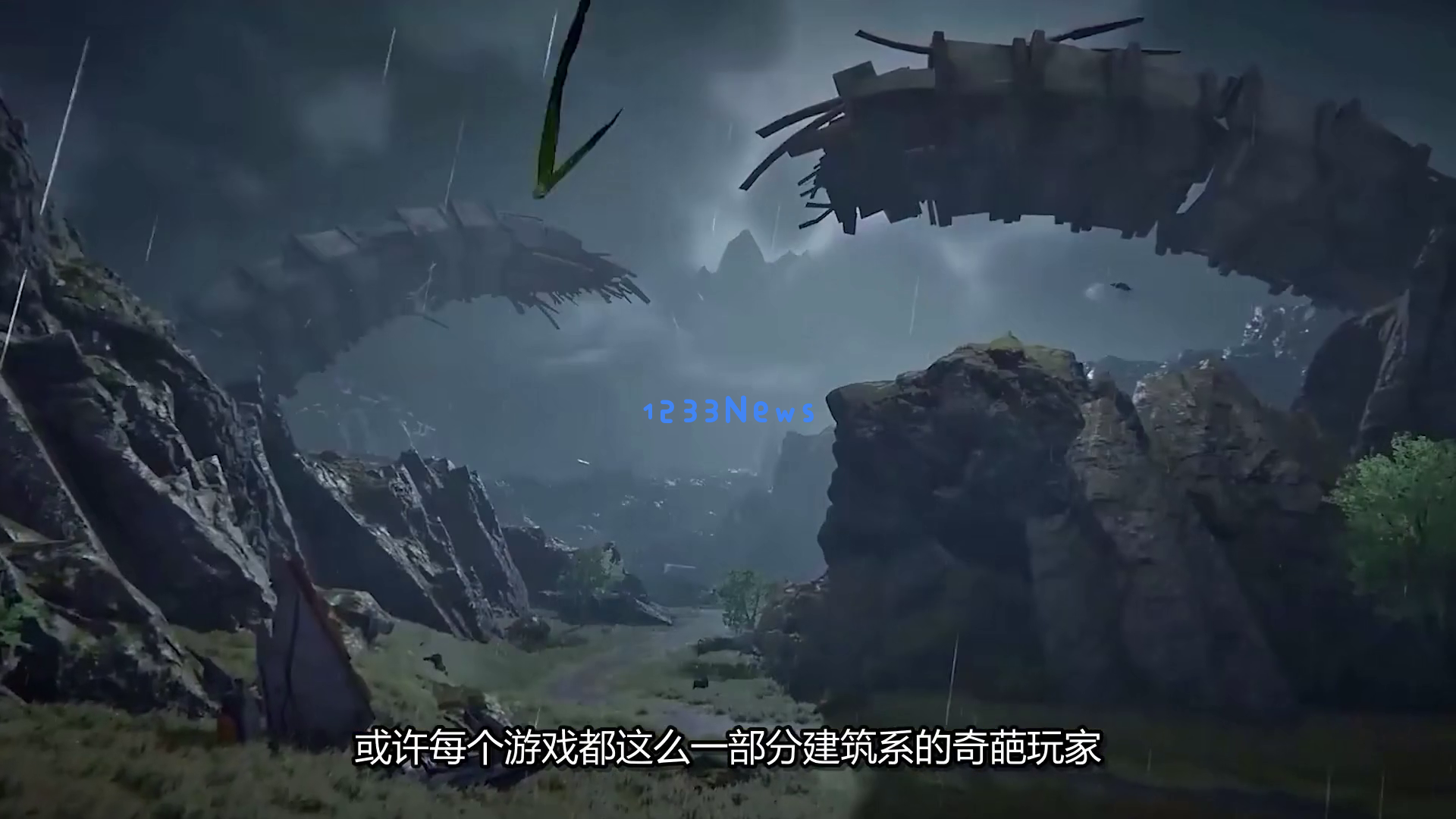 随后,镜头再次回到海滩,展示了几艘沉船和一座高耸的尖塔状建筑物,周围依然是茂密的植被和棕榈树。画面下方出现另一行中文文字:“或许每个游戏都这么一部分建筑系的奇葩玩家。”这句话不禁让人好奇,这些玩家到底会带来怎样的惊喜呢?