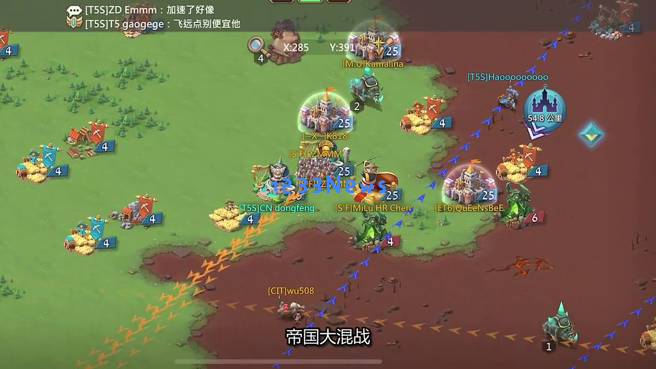 刚开始帝国只有这一块初始土地,你可以通过入侵附近的土地进行领土扩张,在领土上建造建筑,提升基础资源产量。随着推进主线,你会解锁更多玩法,等到解锁使馆和战斗大厅后,就能体验到《王国纪元》最有特色的玩法——帝国大混战。