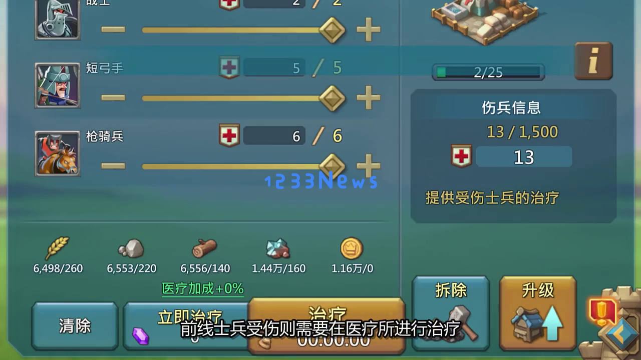 除了小兵和将领,你还可以建造塔楼来吸引仇恨,进行远程攻击或者使用卡牌召唤法术。随着关卡难度逐步提升,你就需要在军营训练更强力的士兵,以应对战斗。前线士兵受伤则需要在医疗所进行治疗,确保你的军队始终保持最佳状态。